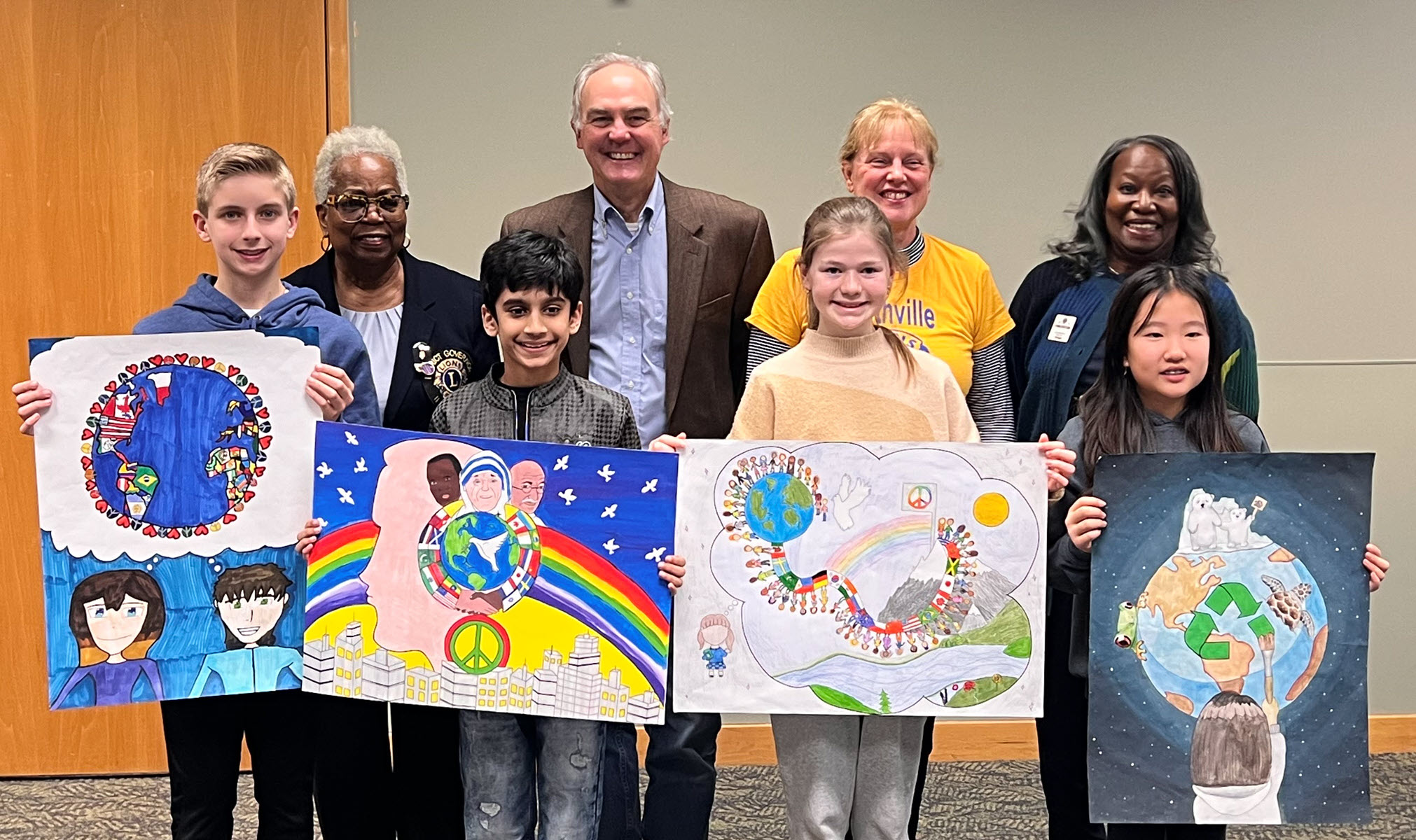 Second Row District Governor Lula Gardfrey, Northville Lions Club President Clay Galarneau, Northville Lions Club Peace Poster Chairman Chris Castelanno and LaWonna Lofton-Coleman